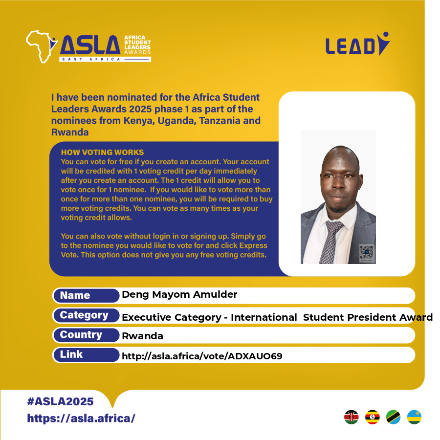 Your voting is only limited by your creditsNominees for Executive Category - International Student, President Award (Kwame Nkrumah Award) (Under 30) - General