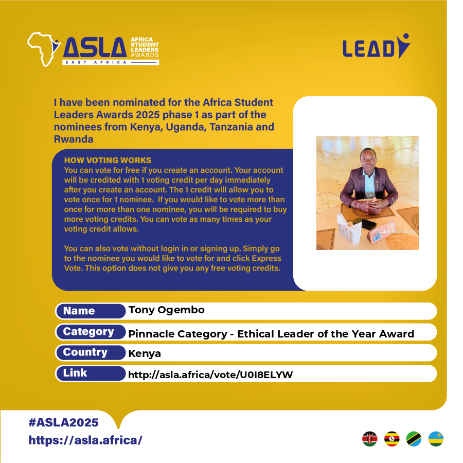 Your voting is only limited by your creditsNominees for Pinnacle Category - Ethical Leader of the Year Award (Patrice Lumumba Award) (Under 30) - General