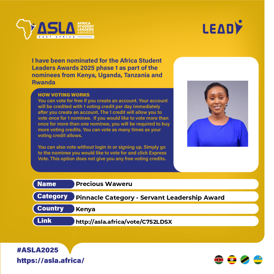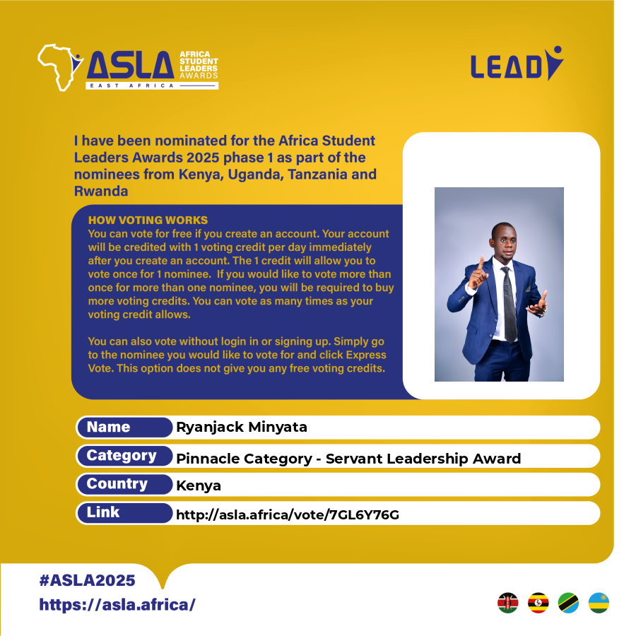 Your voting is only limited by your creditsNominees for Pinnacle Category - Servant Leadership Award (Wangari Maathai Award) (Under 30) - General