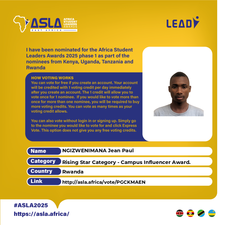 Your voting is only limited by your creditsNominees for Rising Star Category - Campus Influencer Award. (Under 30) - General