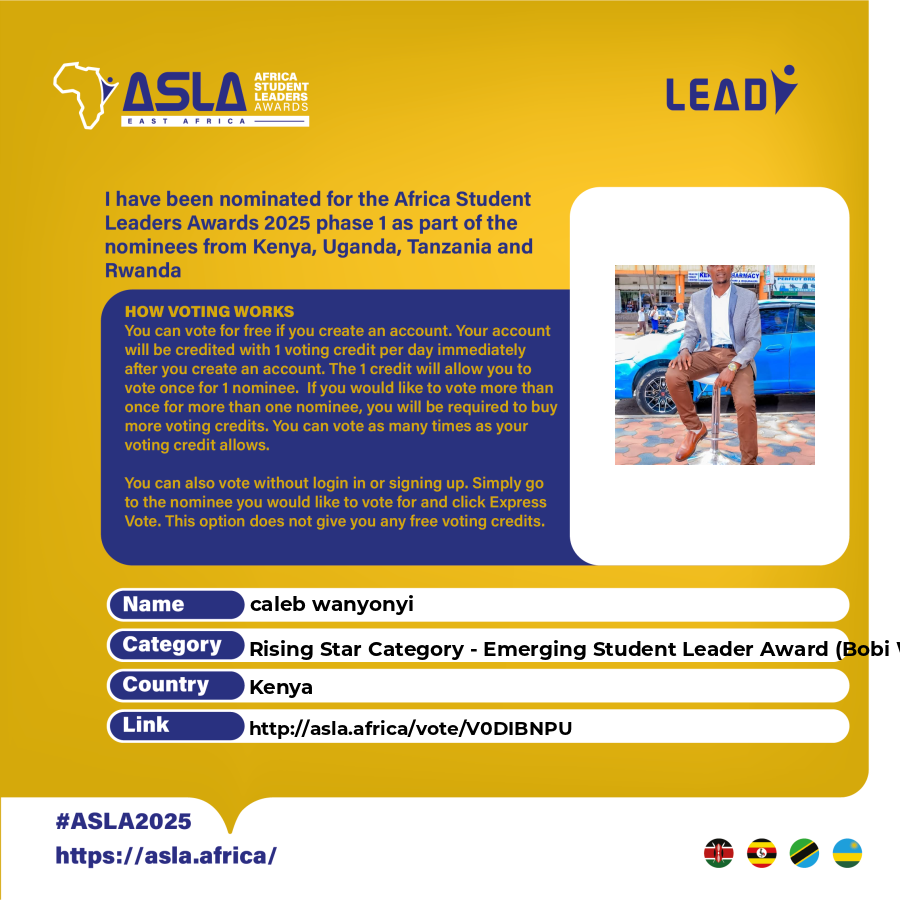 Your voting is only limited by your creditsNominees for Rising Star Category - Emerging Student Leader Award (Bobi Wine Award) (Under 30) - General