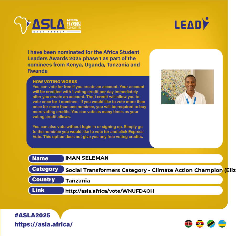 Your voting is only limited by your creditsNominees for Social Transformers Category - Climate Action Champion (Elizabeth Mrema Award) (Under 30) - General